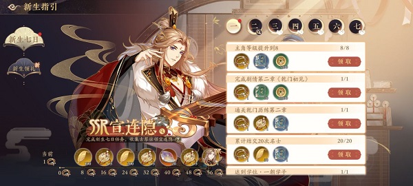 ①七日任務(wù)可獲得古琴弦,累計獲得56個古琴弦可領(lǐng)ssr宣連隱。