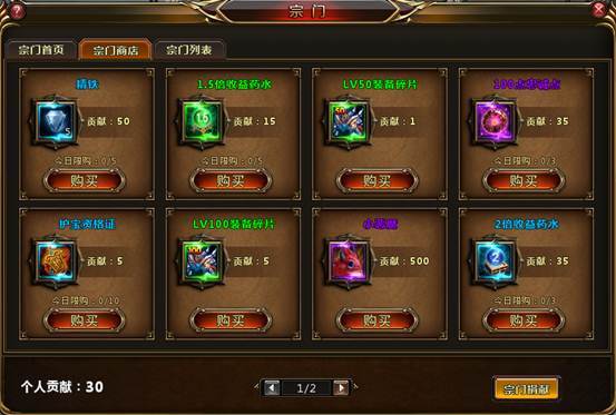4、宗門商店:在宗門商店中可以通過使用宗門貢獻(xiàn)換取各類稀有道具: