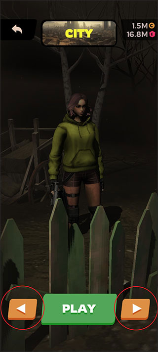 玩家點(diǎn)擊首頁(yè)store即可進(jìn)入商店,可以切換人物以及衣服,也可以購(gòu)買武器。