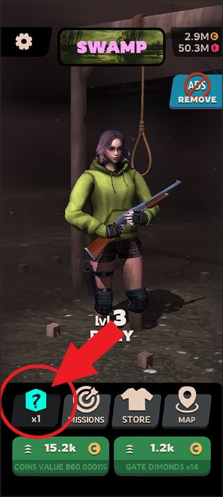玩家點(diǎn)擊首頁(yè)問(wèn)號(hào)按鈕,即可獲得一把隨機(jī)武器進(jìn)行游戲。