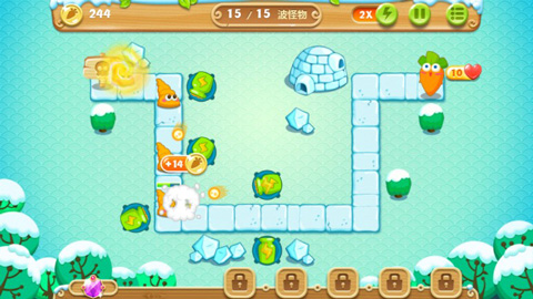 1、在15波特定怪物襲擊中保衛(wèi)蘿卜不受攻擊保衛(wèi)它,就可以獲得金蘿卜了。