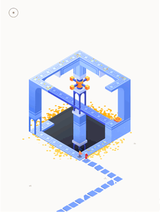 游戲中包含了大量的風格式玩法——視覺錯位、潘洛斯三角、凹凸錯覺、二維和三維的扭轉變換、德羅斯特效等幾何美學元素和游戲體驗,只是簡單的通過點擊來進行移動的,而游戲也只是在點擊的基礎上,增加了游戲中那種視覺錯覺。