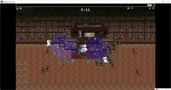 牧師(初始武器:圣水):每秒恢復0.5生命值并且增加30生命上限。開局所有武器范圍最大化,圣水升級后失去這個效果。