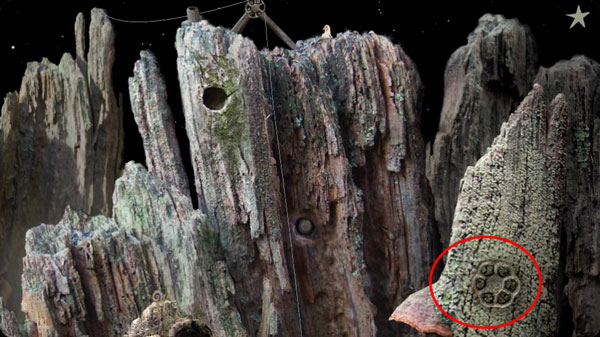 1、點(diǎn)擊右邊山上的機(jī)關(guān),點(diǎn)擊四次,直到左邊山洞里伸出的能夠成功連接。