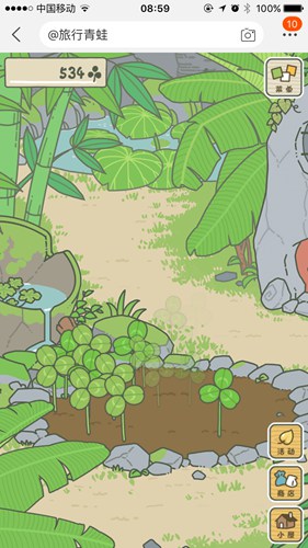 2、我們可以在庭院中看到地里種著很多三葉草,按住屏幕滑動(dòng)這些三葉草即可收集起來(lái)。運(yùn)氣好還有幾率收到四葉草,只是概率比較小。三葉草在商城兌換食物,而四葉草可以當(dāng)做一次性的護(hù)身符。