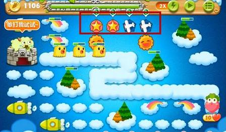2、打掉太陽(yáng)旁邊的道具獲得2個(gè)炸彈星和2只玩具飛機(jī),此時(shí)前期就基本沒(méi)什么壓力。