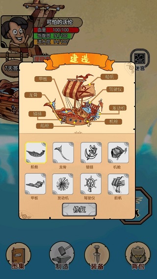 介紹完移動后,下面就是劇情任務(wù),根據(jù)指示前往船只的方向,點擊“修復(fù)”,此刻會有修復(fù)建造所需要的材料,如圖: