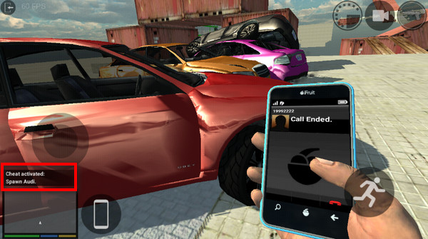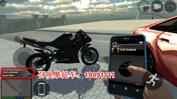3、調(diào)出手機(jī)菜單,輸入作弊碼,竟然能夠召喚NPC人物和奧迪跑車到眼前,太神奇了。