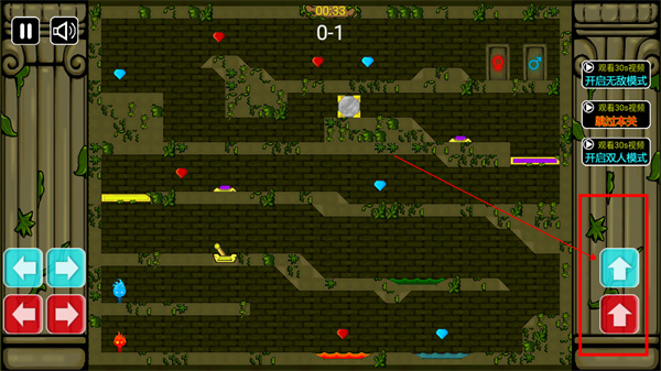 3、左手分別控制冰火雙人的左右走向;