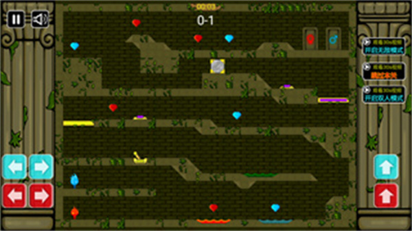 3、不同顏色的角色只能收集相應(yīng)顏色的寶石以及進(jìn)入相應(yīng)顏色的門。