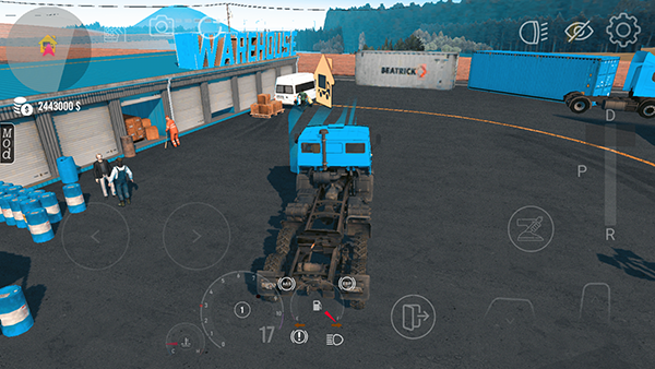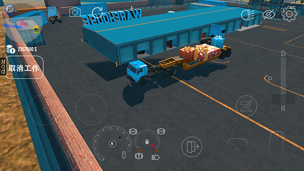 3、進(jìn)入游戲后,左邊控制車輛拐彎,右下角控制車輛油門和剎車以及換擋手剎等,切換到D檔,放下手剎,點(diǎn)擊油門控制車輛前進(jìn),倒車需要切換到R檔。
