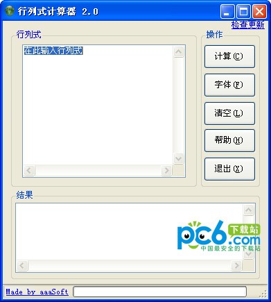行列式計算器用來計算N階行列式的輕巧軟件,是一款使用簡單的行列式計算器軟件。只需在空白處內輸入行列式,然后點計算即可在結果區(qū)域看到想要的結果,軟件支持進行字體的修改!