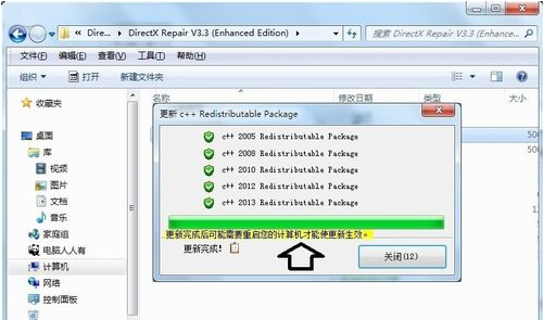 8、最后我們需要根據(jù)圖中提示,更新成功后將電腦重啟讓其修復(fù)生效。