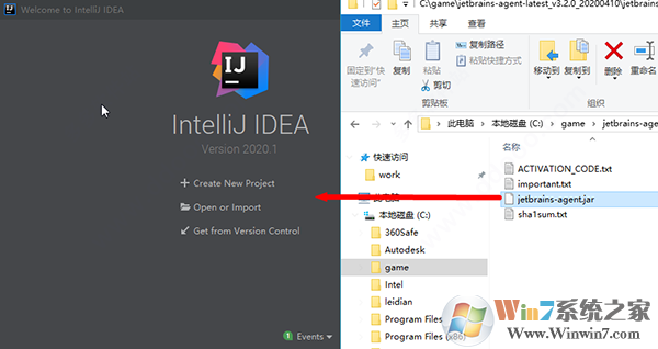 8、將lib文件夾中的jetbrains-agent.jar拖動到軟件內(nèi);