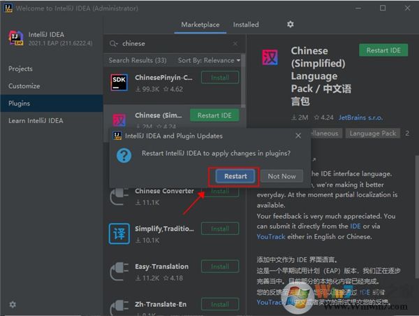 14、下載完成后點(diǎn)擊“restart ide”——“restart”;