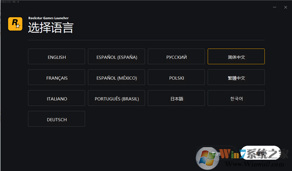 1、下載R星游戲平臺的壓縮包,解壓并雙擊進入如下界面,用戶需要根據(jù)自己需求進行語言的選擇
