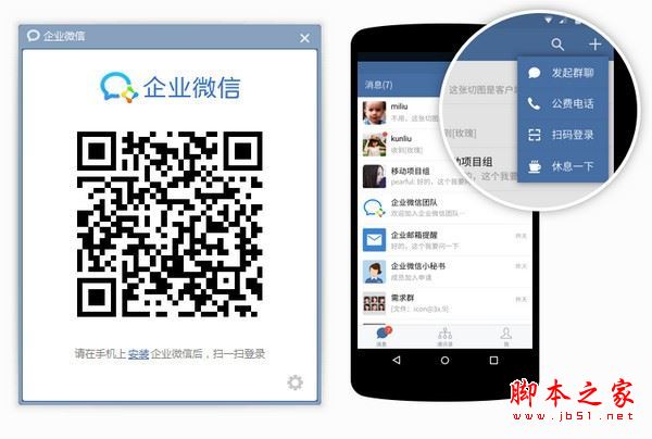微信插件繼承企業(yè)號所有能力,員工掃碼關(guān)注后,即可在微信中接收企業(yè)通知和使用辦公應(yīng)用。