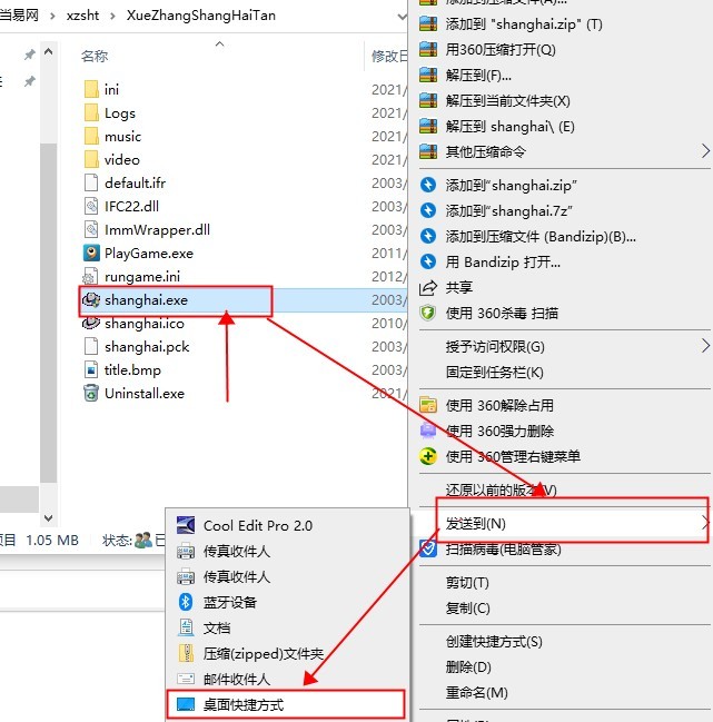1.首先在桌面上創(chuàng)建shanghai.exe快捷方式。