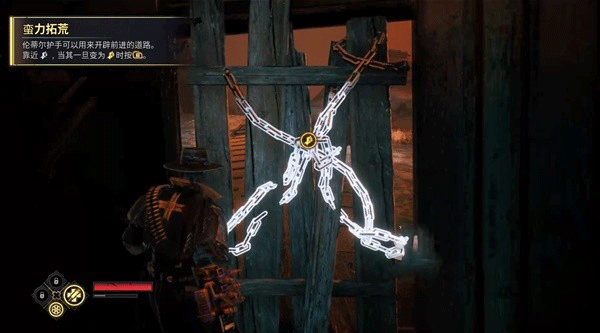 5、一路往前走,進(jìn)入車廂后遇到擋路的鐵鏈木板,揮拳可擊碎。有些時候擊碎這種鐵鏈木板可以發(fā)現(xiàn)隱藏的支路;