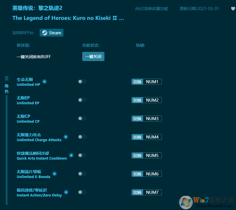 英雄傳說黎之軌跡2修改器功能介紹: