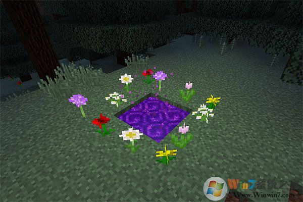 首先依舊是進(jìn)入暮色森林的方法,拿12朵花或蘑菇啥的擺出4x4,中間留空并倒上水,最后丟一顆鉆石進(jìn)去。