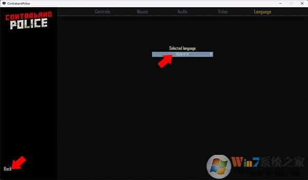 5、接著將Language改為簡體中文并點擊左下方的Back選項來保存更改,之后我們重啟游戲即可將游戲語言改為簡體中文