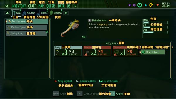 制作斧頭 除了第三種材料其他都可在地圖拾取