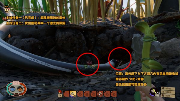 前往不穩(wěn)定激光的光束塔下方 擊敗干擾光束塔線(xiàn)路的昆蟲(chóng)