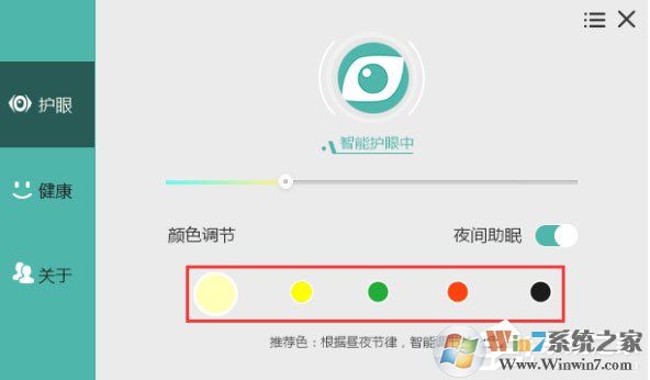 1、打開護眼寶軟件,選擇護眼功能,進入護眼功能之后我們可以設置顏色、亮度及夜間助眠功能;